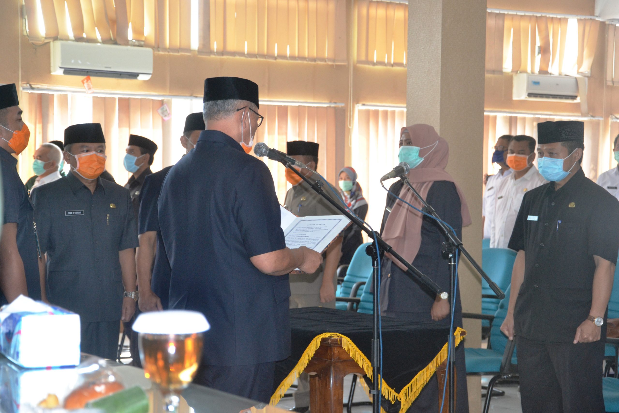 Pelantikan berjalan khidmat dan cukup singkat, sebelum ke dalam ruangan aula Purbawisesa Setda Kuningan, para pejabat dan tamu undangan diwajibkan melakukan cuci tangan, kemudian pemeriksaan suhu tubuh, dan wajib menggunakan masker.