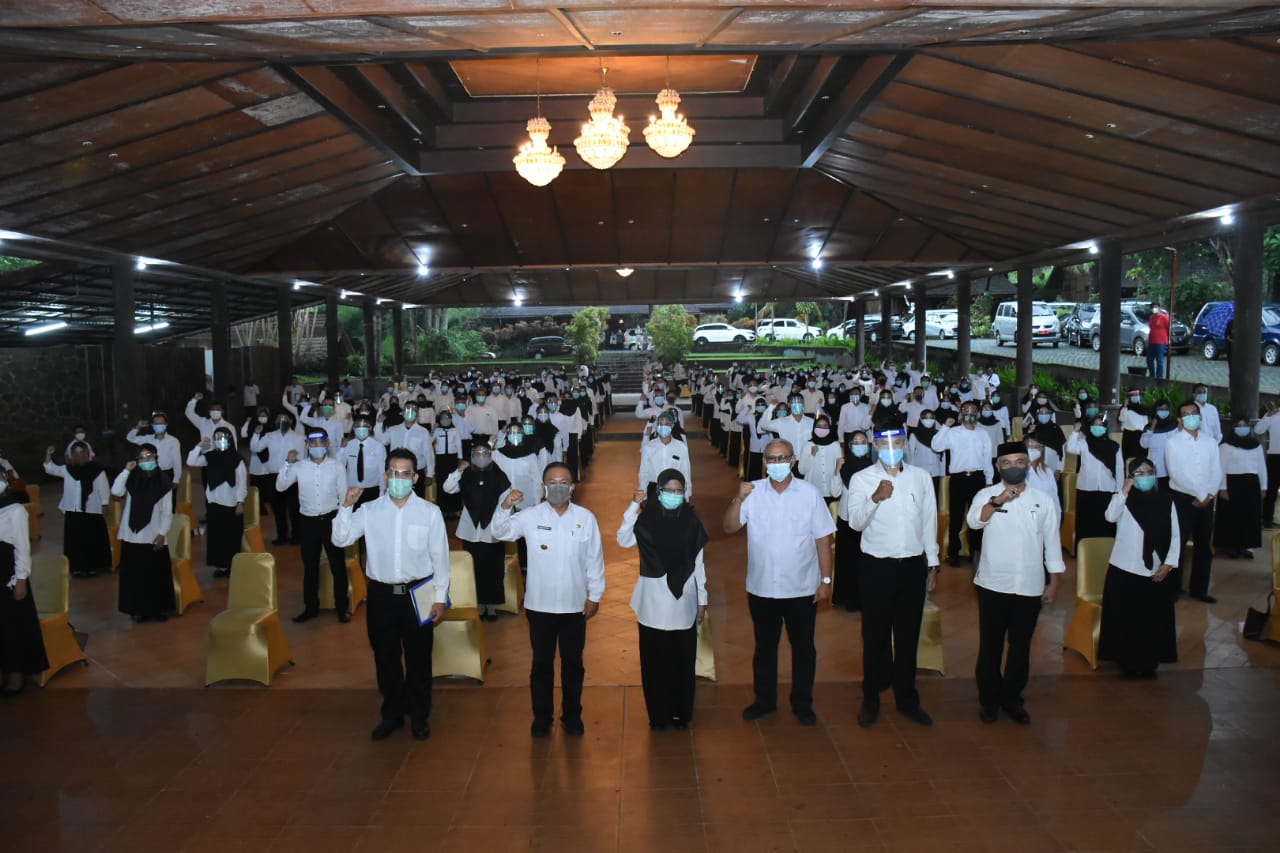 Bupati Kuningan H. Acep Purnama mengucapkan selamat kepada sebanyak 165 orang yang menerima petikan Keputusan Bupati tentang Pengangkatan CPNS.