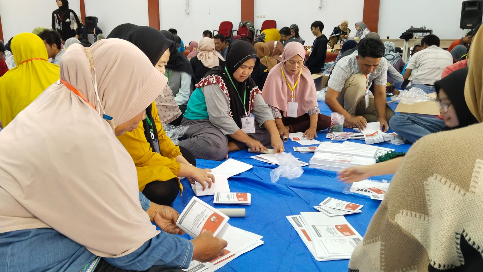 Secara teknis selama pelipatan surat suara di bagi menjadi 62 kelompok dan perkelompok berisi 10 orang.