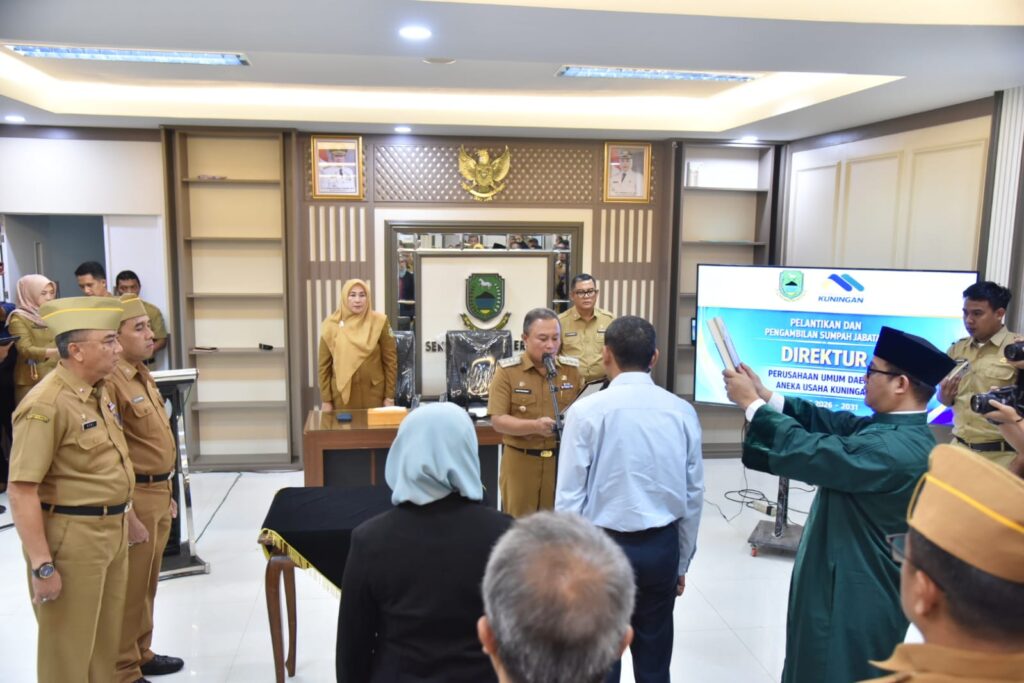 KUNINGAN, (FC).- Adang Kurniawan, SE, resmi dilantik sebagai Direktur Perumda Aneka Usaha (PDAU) Kabupaten Kuningan periode 2026-2031 oleh Dian Rachmat Yanuar di Ruang Rapat Sang Adipati, Setda Kuningan, Senin (23/2).