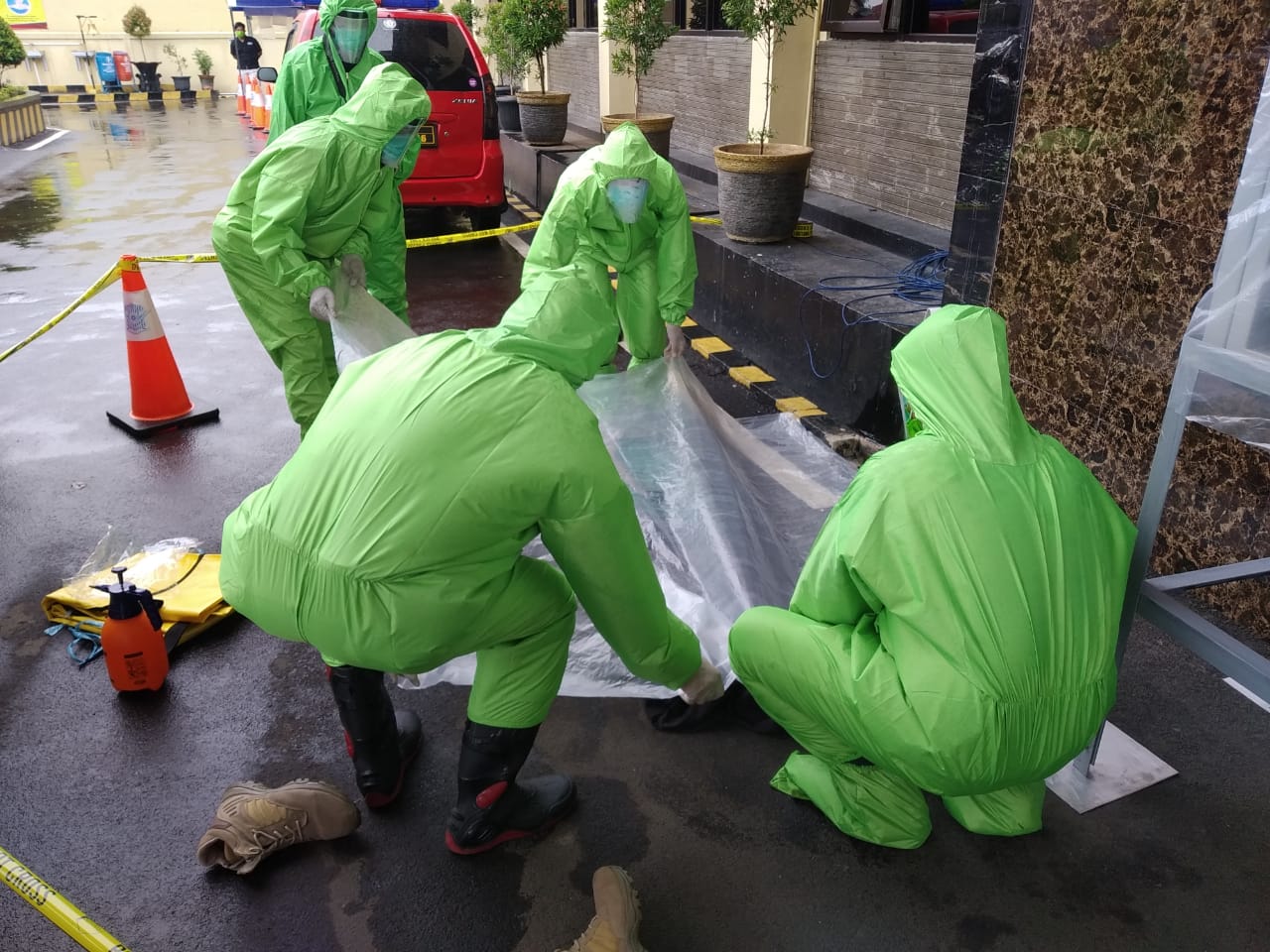 KAB. CIREBON, (FC).- Polresta Cirebon menggelar simulasi penanganan jenazah pasien virus corona atau Covid-19. Hal tersebut dilakukan untuk mencegah penularan virus Covid-19 terhadap anggota Polresta Cirebon yang bertugas melakukan penanganan langsung terhadap jenazah yang belum diketahui riwayatnya.
