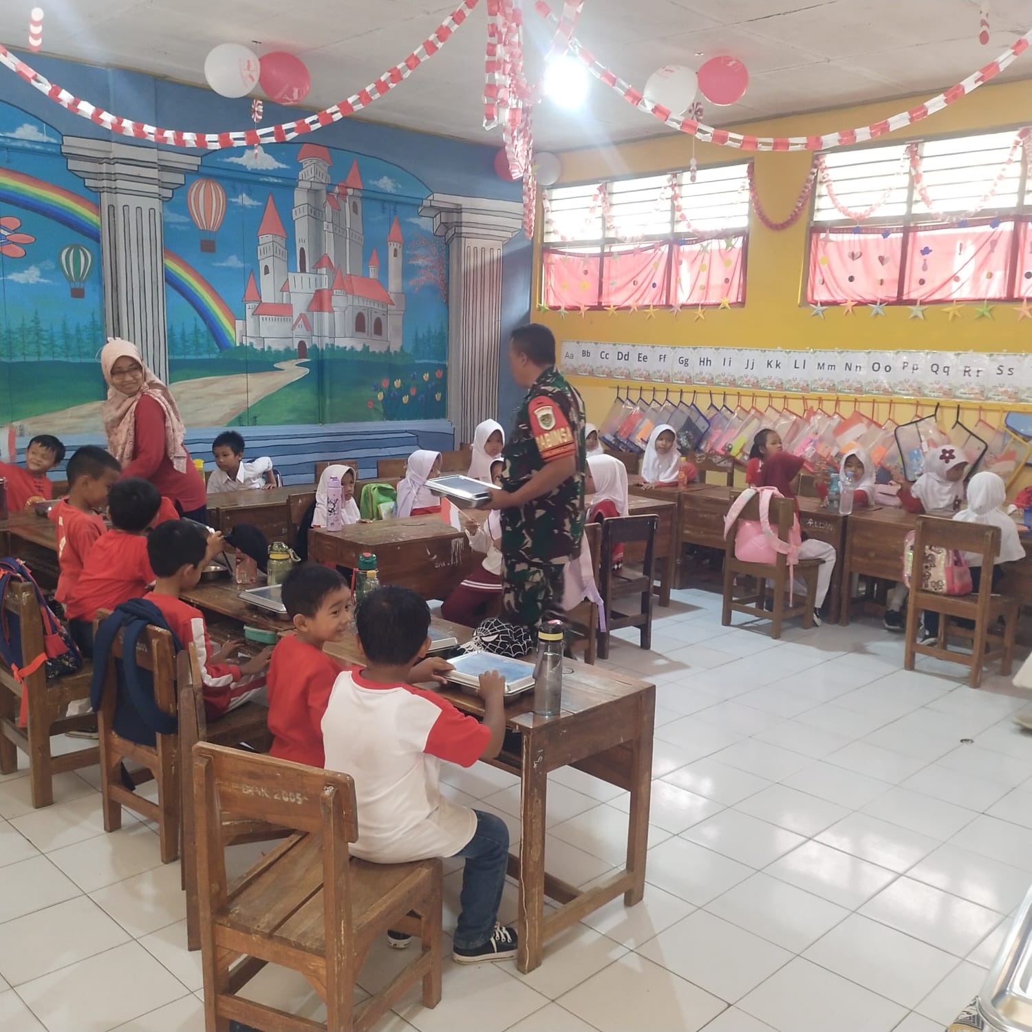 Babinsa Kelurahan Drajat Monitor Program Makan Bergizi di SDN Simaja Selatan