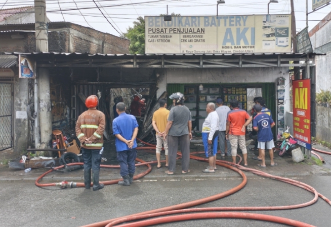 Kapolsek Gunung Jati AKP Mochamad Komarudin menjelaskan, kebakaran diduga berasal dari konsleting arus listrik di area bengkel motor, kemudian api dengan cepat merambat ke bagian bangunan lain yang berdempetan termasuk toko aki.