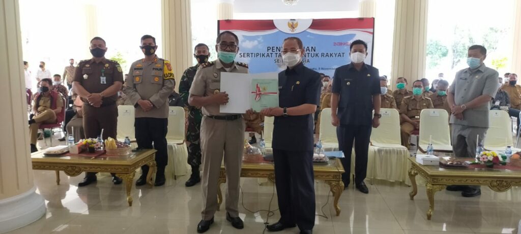 MAJALENGKA, (FC).- Pemerintah Kabupaten (Pemkab) Majalengka melalui Kantor Agrararia Tata Ruang dan Badan Pertanahan Nasional (ATR/BPN) Majalengka membagikan 14.000 sertifikat tanah untuk masyarakat. Pembagian sertifikat itu dilakukan secara simbolis di Pendopo Majalengka, Senin (9/11).