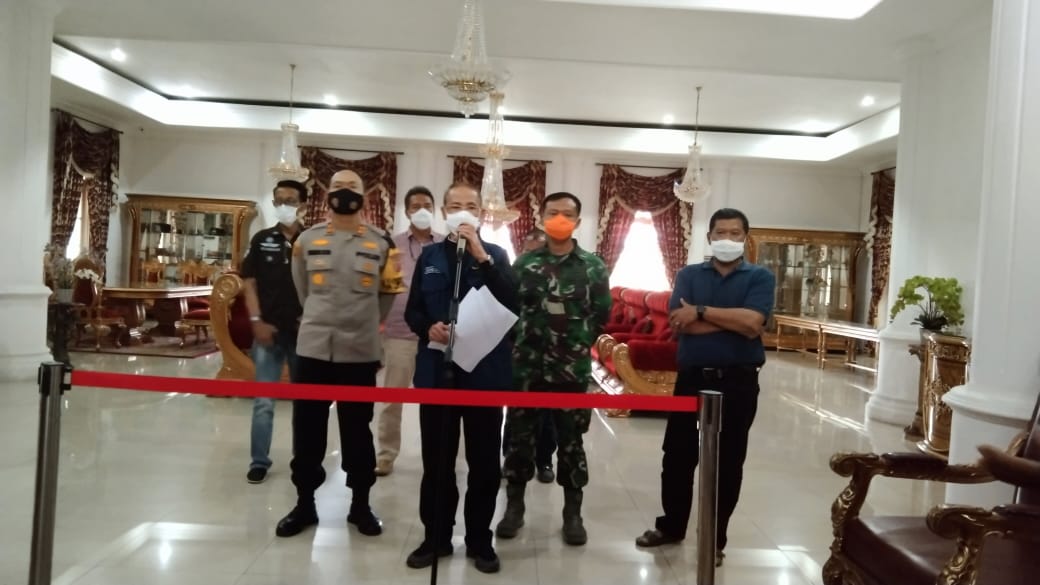 Dipimpin Bupati, unsur Forkopimda seperti Sekda Majalengka, Kapolres Majalengka, Dandim 0617 Majalengka, Kadinkes Majalengka, Kepala Pelaksana BPBD dan lainnya menggelar konferensi pers di Kantor Bupati, Rabu (12/5).