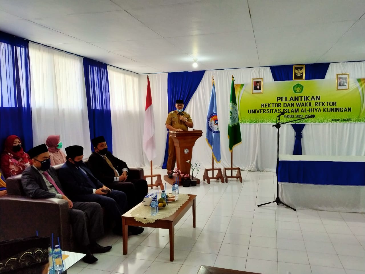 Hadir diacara pelantikan tersebut Bupati Kuningan Acep Purnama Kepala Kemenag Kuningan, Kepala Dinas Pendidikan dan Kebudayaan Kuningan, dan tamu undangan Lainnya di Aula Kampus 1 UNISA, Rabu (7/7)