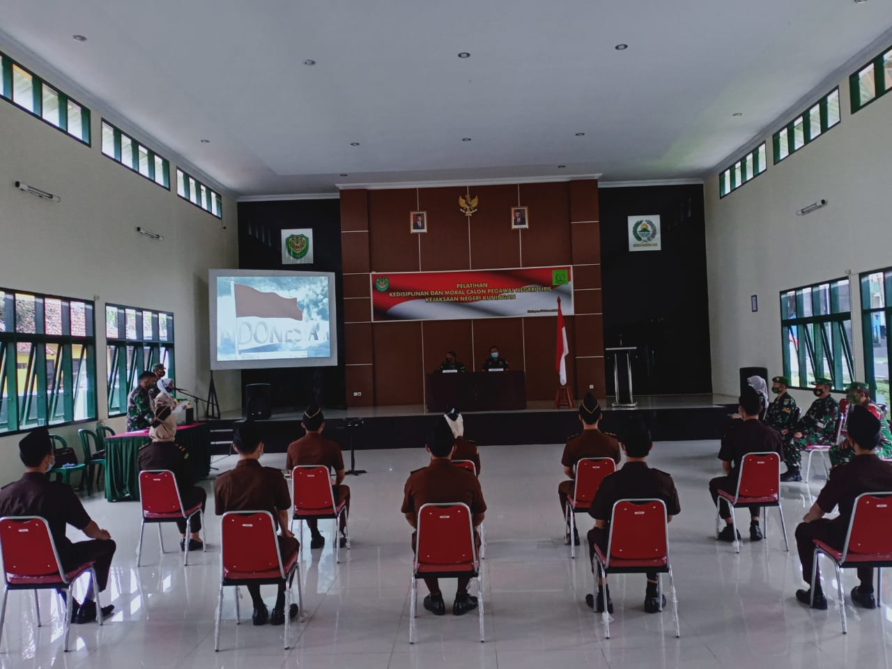 KUNINGAN, (FC).- Kodim 0615/Kuningan menggelar Pelatihan Kedisiplinan dan Moral CPNS Kejaksaan Negeri (Kejari) Kuningan di Aula Mashud Wishnu Saputra Kodim 0615/Kuningan, Senin (15/2).