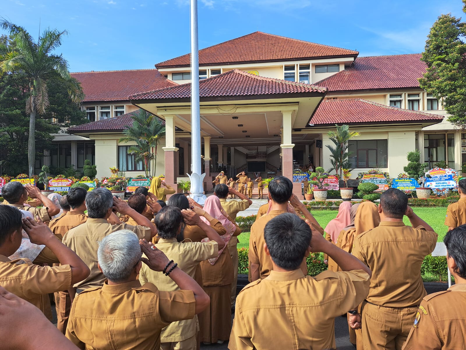 APARATUR SIPIL Negara di lingkungan Pemerintah Kabupaten Cirebon tengah mengikuti aple pagi di halaman kantor bupati.* (Foto: Dok/FC)