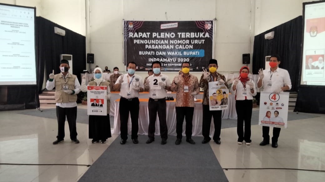 INDRAMAYU, (FC).- Rapat pleno terbuka pengundian nomor urut Paslon Bupati dan wakil Bupati Indramayu pilkada 2020 diwarnai adu Visi Misi empat pasangan calon. Hal itu terungkap usai keempatnya mendapat nomor urut pilkada yang di gelar di gedung PGRI Indramayu, Kamis (24/9)
