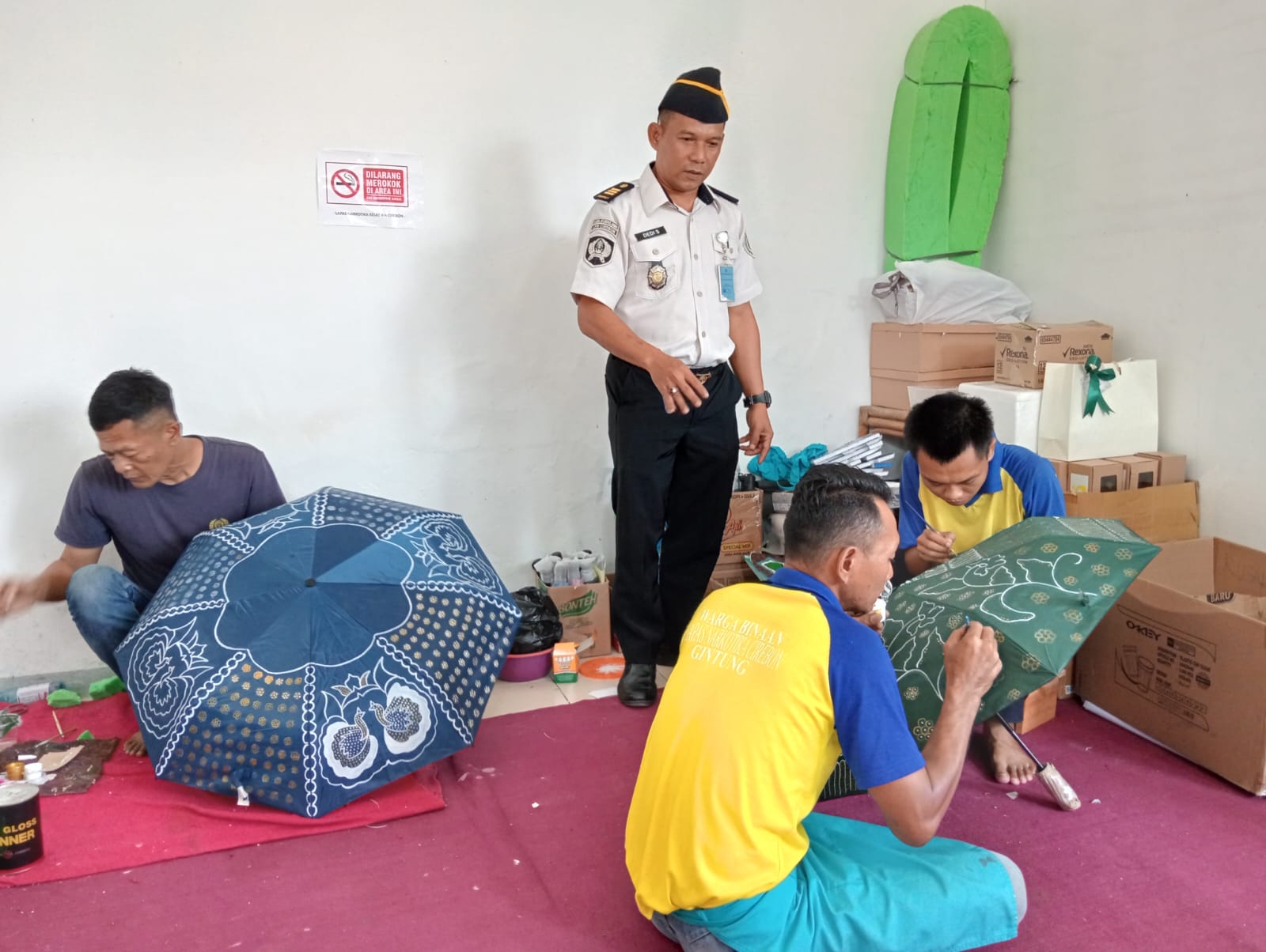 Sejumlah warga binaan tampak sibuk mengikuti pelatihan keterampilan, mulai dari melukis payung hingga mengolah makanan.