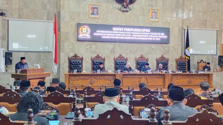 KAB. CIREBON, (FC).- Dewan Perwakilan Rakyat Daerah (DPRD) Kabupaten Cirebon menggelar Rapat Paripurna Pandangan Umum Fraksi Terhadap Rancangan Peraturan Daerah (Raperda) Rencana Pembangunan Jangka Menengah Daerah (RPJMD) 2025–2029, Selasa (3/6). Kritik-kritik tajam disampaikan sejumlah fraksi  terhadap rencana pembangunan lima tahunan daerah.