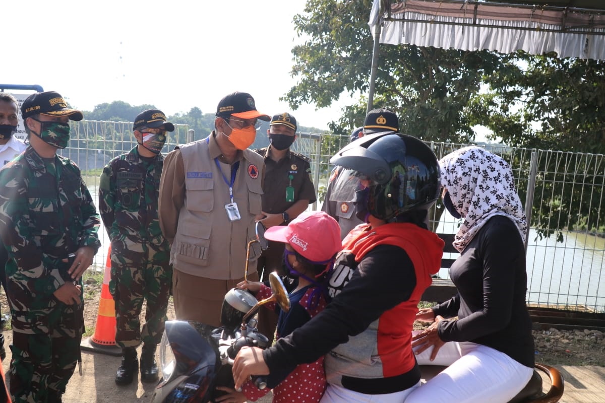Plt. Bupati Indramayu yang juga Ketua Gugus Tugas Percepatan Penanganan Covid-19 Kabupaten Indramayu, Taufik Hidayat bersama dengan Dandim 0616 Indramayu Letkol CZI Aji Sujiwo, Waka Polres Indramayu Kompol Nanang Suhendar, BPBD Indramayu, Dinas Perhubungan, dan Dinas Komunikasi dan Informatika, Senin (11/05) melakukan pemantauan di 3 lokasi Pos Chek Point yakni Jembatan Sewo Kecamatan Sukra, Bendungan Salam Darma Kecamatan Anjatan , dan di Desa Tumaritis Kecamatan Haurgeulis.
