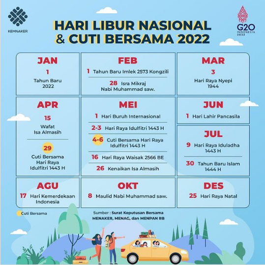 Hari libur Nasional dan Cuti Bersama Tahun 2022