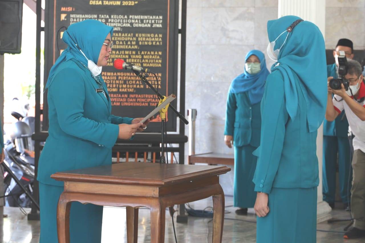Pelantikan tersebut dilakukan langsung oleh Ketua TP PKK Kabupaten Kuningan Ika Siti Rahmantika. turut hadir Bupati Kuningan Acep Purnama, Sekda Kuningan Dian Rachmat Yanuar, Wakil Ketua TP PKK Kuningan Yoana Ridho Suganda, Ketua Dharma Wanita Kuningan Ela Dian, Kepala DPMD Kuningan Dudi Pahrudin dan seluruh Camat.
