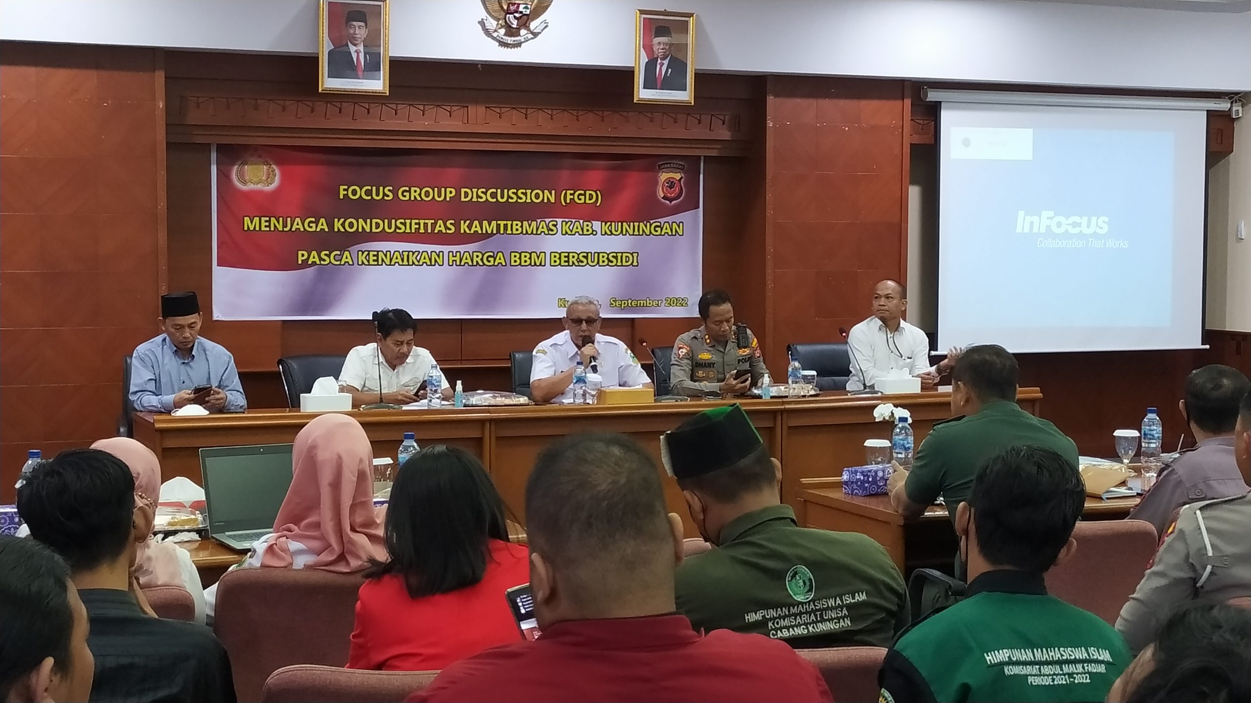 KUNINGAN, (FC).- Kenaikan bahan bakar minyak (BBM) membuat Polres Kuningan menggelar Forum Group Discussion (FGD) dengan tema Menjaga Kondusifitas Kamtibmas Kuningan Pasca Kenaikan Harga BBM Bersubsidi. Di Aula Bank Jabar (BJB) Kuningan.