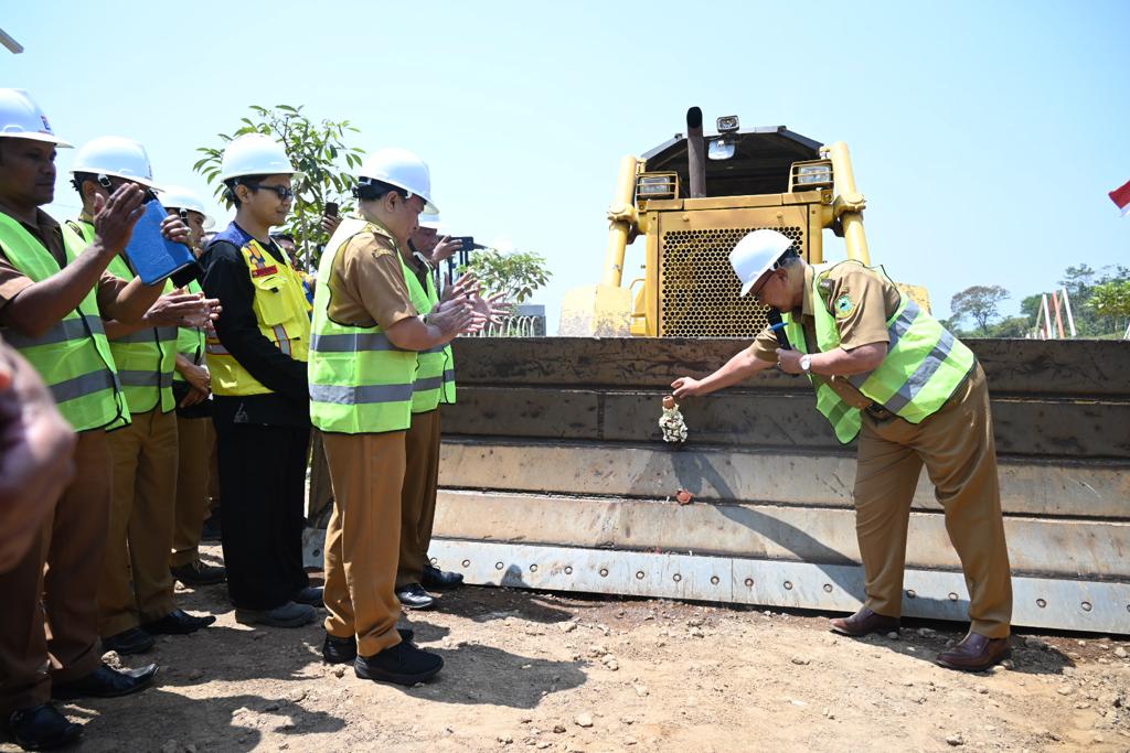Pembangunan Jalan Cigugur-Cisantana ditandai dengan Ground Breaking oleh Bupati Kuningan Acep Purnama, di depan RM Rageman Resto.