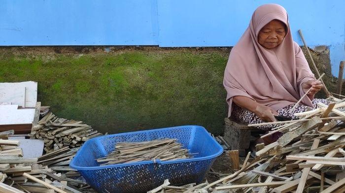 Warga Kelurahan Babakan Jawa, Kabupaten Majalengka, Sawiah menggeluti pembuatan tusuk sate. (Foto: Munadi/FC)