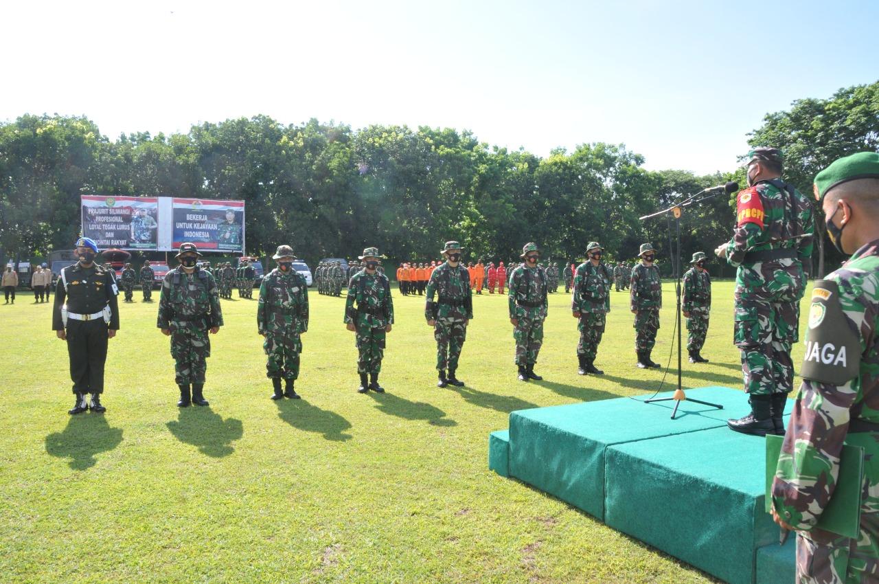 KAB. CIREBON, (FC).- Dengan tetap menjalankan protokol kesehatan, Korem 063/SGJ melaksanakan kegiatan apel pengecekan Kesiapan Latihan Penanggulangan Bencana Alam TA. 2020 di Markas Kodim 0620/Kab. Cirebon, Jum’at (20/11)