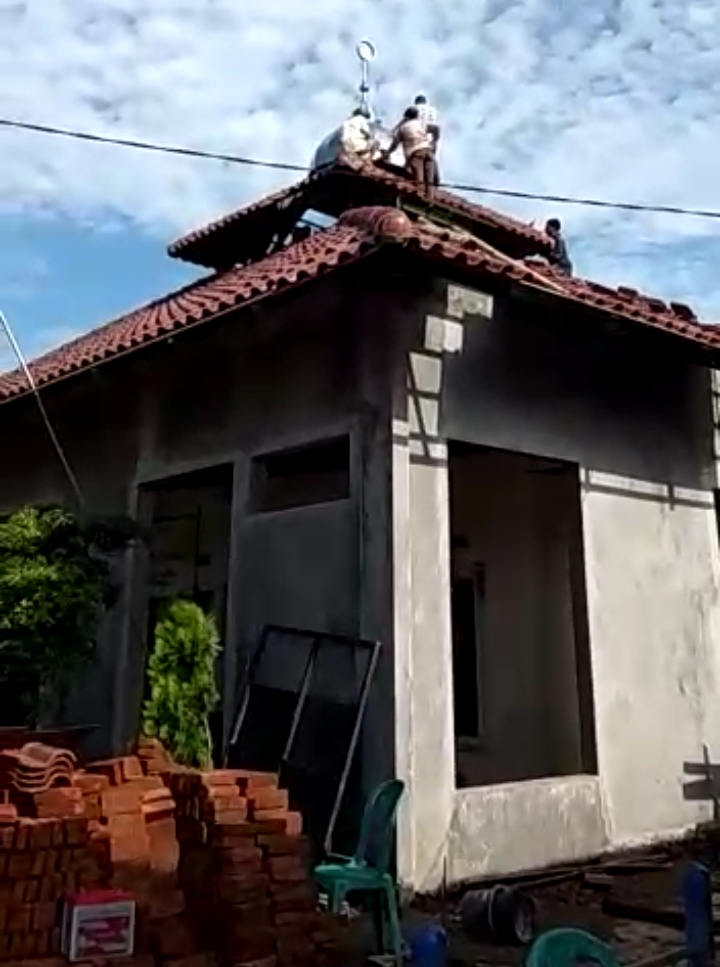 Soleh melanjutkan, beberapa hari lalu menara mushola sudah mulai di pasang, sehingga sudah mulai terlihat bentuk mushola.