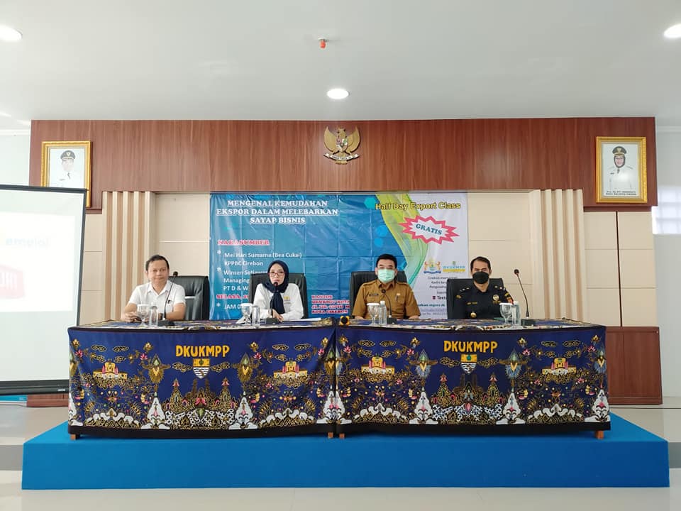 KOTA CIREBON, (FC).- Dalam upaya mendukung para pelaku usaha ekspor dan menjaring para UMKM yang ingin naik kelas, atau yang ingin merambah ke bidang ekspor, Kamar Dagang Indonesia (Kadin) Kota Cirebon bersama dengan Dinas Koperasi Usaha Kecil Menengah Perdagangan dan Perindustrian (DKUKMPP) Kota Cirebon menggelar Half Day Export Class.