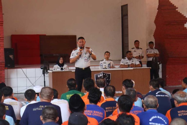 KOTA CIREBON, (FC).- Kepala Rumah Tahanan Negara (Rutan) Kelas I Cirebon, Jonson Manurung, menggelar tatap muka perdana dengan warga binaan pemasyarakatan (WBP) di lapangan blok hunian R pada Selasa (21/4).