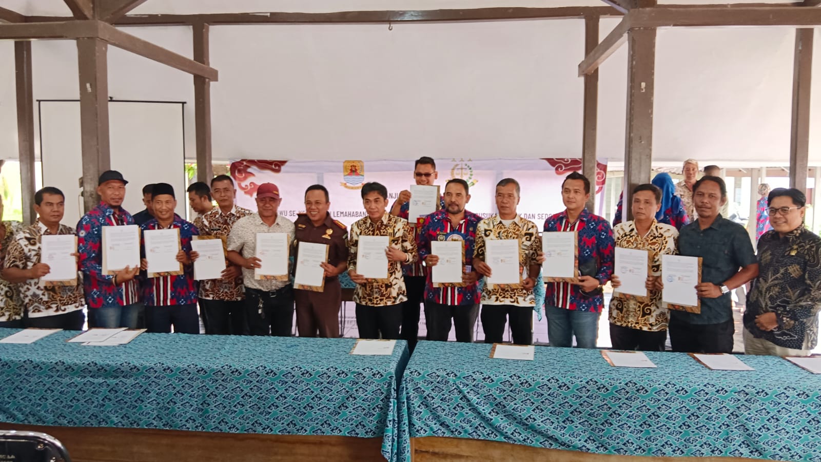 KAB.CIREBON, (FC).- Upaya memperkuat tata kelola pemerintahan desa, khususnya di bidang perdata dan tata usaha negara, Pemerintah Kabupaten (Pemkab) Cirebon bekerjasama dengan Kejaksaan Negeri (Kejari) Kabupaten Cirebon melakukan Penandatanganan Nota Kesepahaman (MoU) yang berlangsung di Kecamatan Lemahabang, Kabupaten Cirebon, Kamis (14/8).