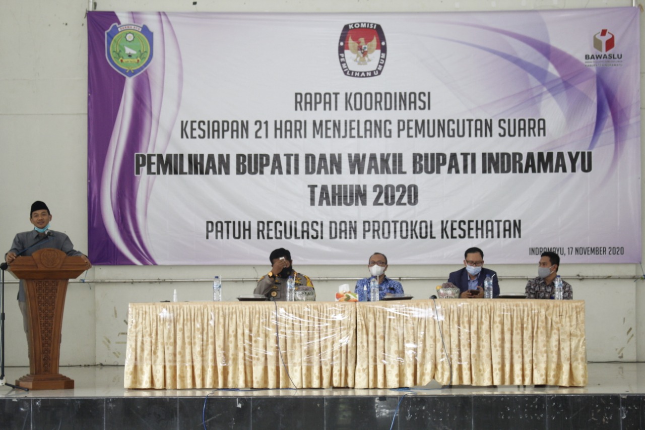 Rakor tersebut dihadiri oleh KPU Provinsi Jawa Barat, Badan Pengawas Pemilihan Umum (Bawaslu) Indramayu, Kepala Polisi Resor (Kapolres) Indramayu serta Sekretaris Daerah (Sekda) Kabupaten Indramayu beserta undangan lainnya.