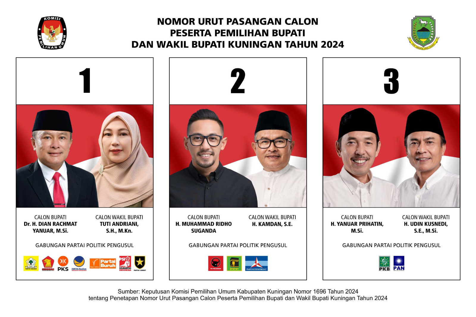 Ketiga paslon, disebutkan Aof, sudah bisa menggunakan nomor urut yang sudah ditetapkan oleh KPU Kabupaten Kuningan pada tanggal 23 September 2024 pada tanggal 25 September 2024, besok.