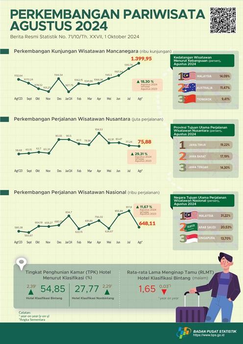 JAKARTA, (FC).- Badan Pusat Statistik (BPS) menyampaikan statistik perkembangan pariwisata untuk kondisi bulan Agustus 2024.