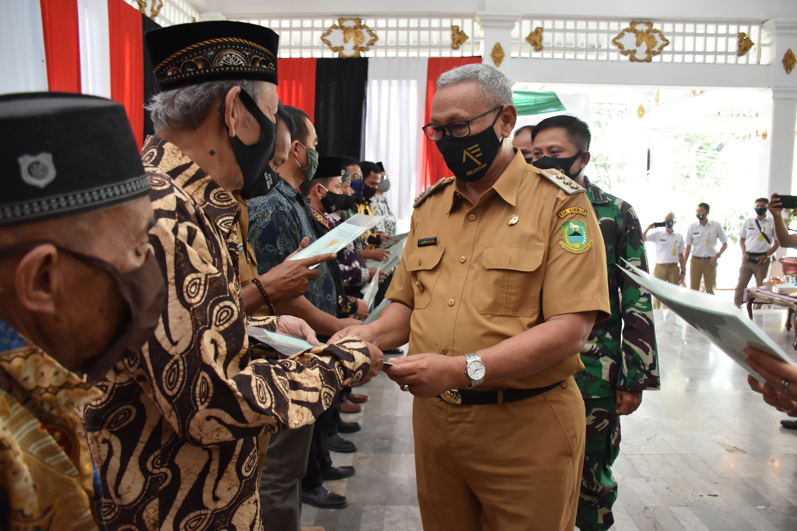 KUNINGAN, (FC).- Untuk pertanahan, Kabupaten Kuningan diperkirakan ada sekitar 650.000 bidang tanah yang belum bersertifikat. Hal itu diungkapkan Bupati Kuningan H. Acep Purnama disela acara Peringatan Puncak Hari Agraria dan Tata Ruang Nasional Tahun 2020 bersama Presiden RI Joko Widodo melalui virtual. Di Pendopo Kuningan, Senin (9/11).