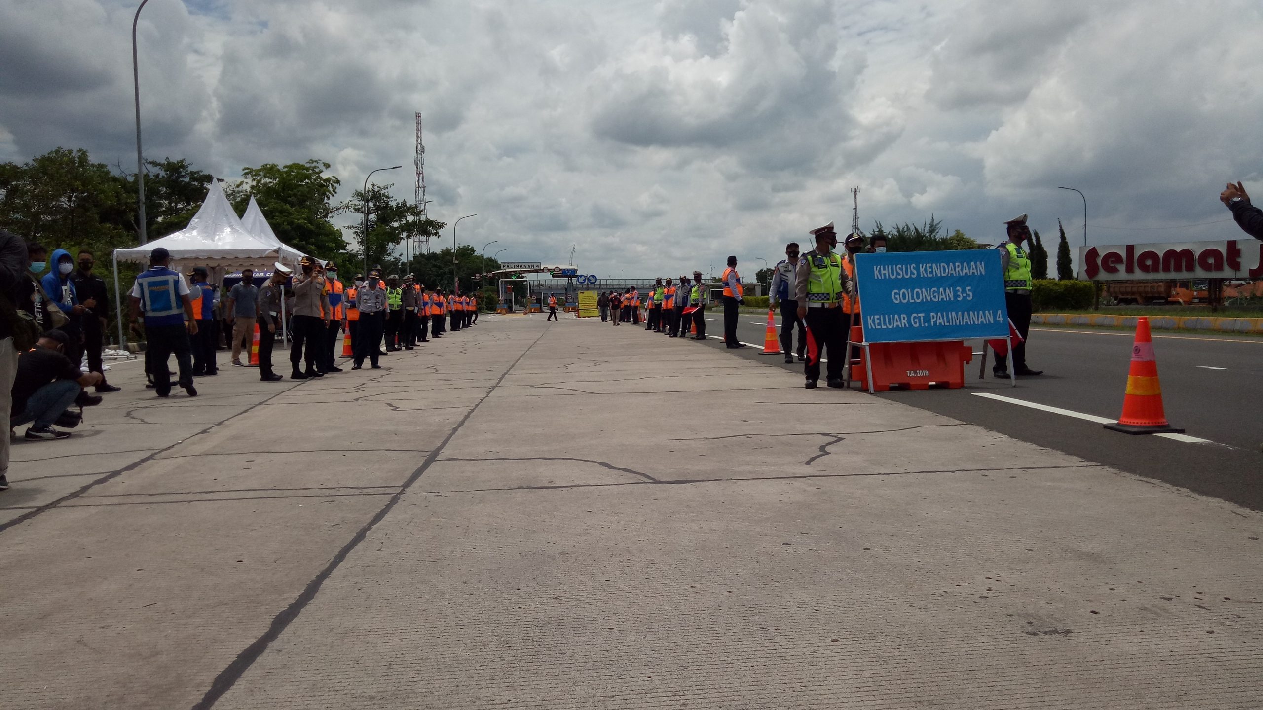 Kepolisian bersama dengan Dirjen Perhubungan Darat Kementrian Perhubungan melakukan penyekatan jalan dengan mengeluarkan kendaraan truk sumbu 3 dari jalan tol ke jalur arteri lainnya.