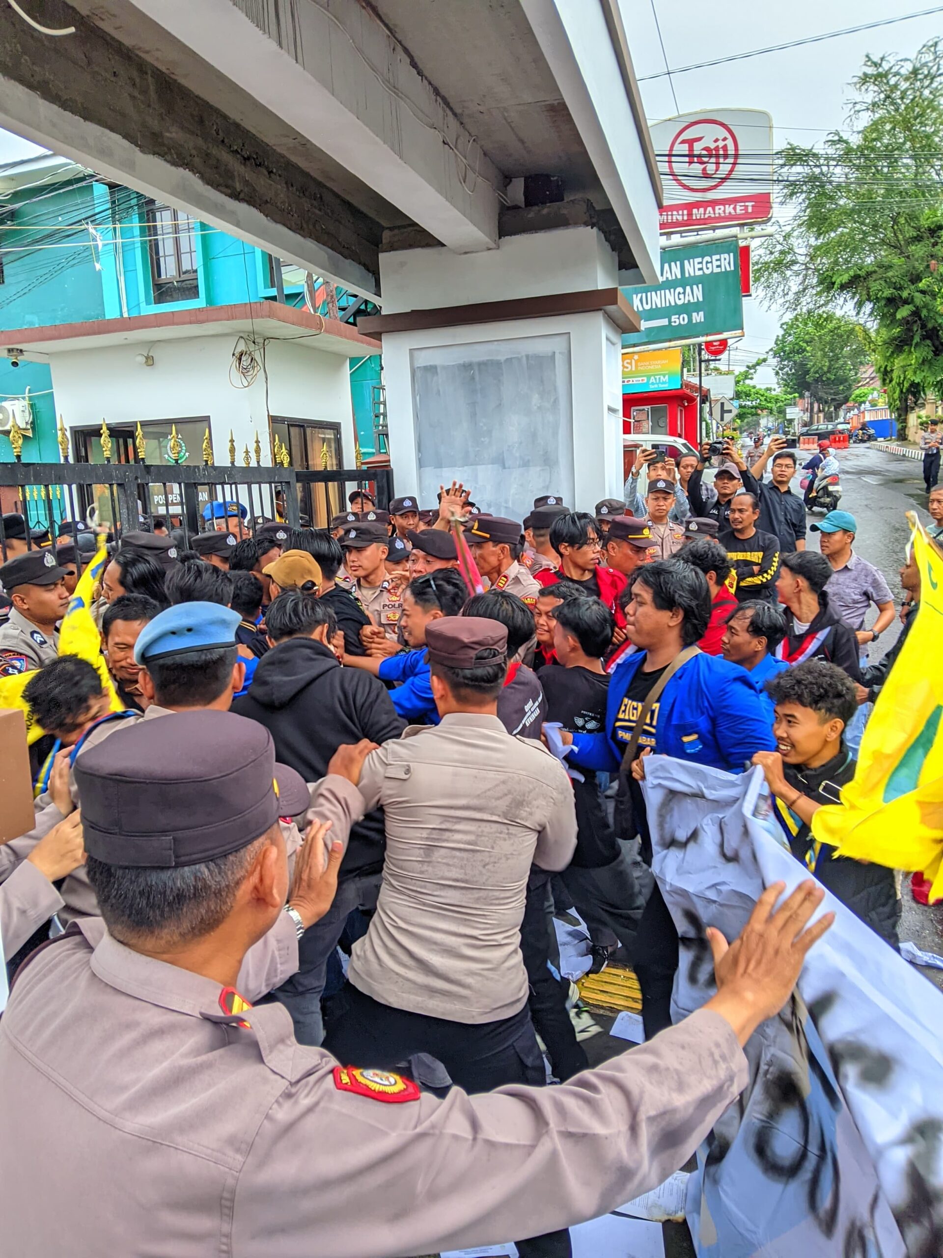 Namun situasi sempat memanas ketika mahasiswa memaksa masuk untuk menemui Kepala Kejaksaan Negeri Kuningan, Ikhwanul Ridwan Saragih.