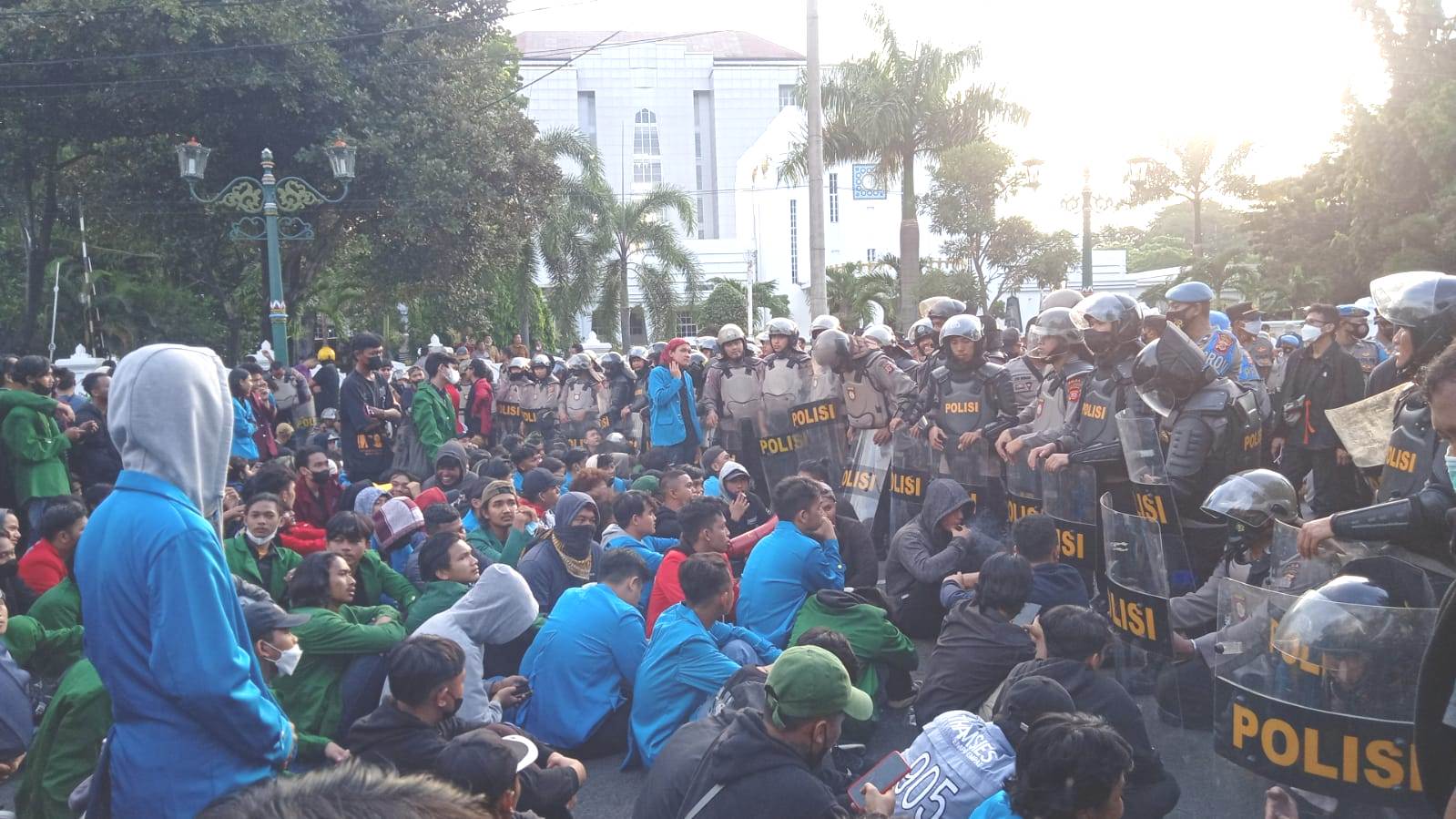 Aksi demonstrasi tersebut sempat beberapa kali mengalami kericuhan dan saling dorong antara mahasiswa dengan aparat kepolisian.Masa demonstrasi membubarkan aksi usai adzan Magrib. (Sakti)