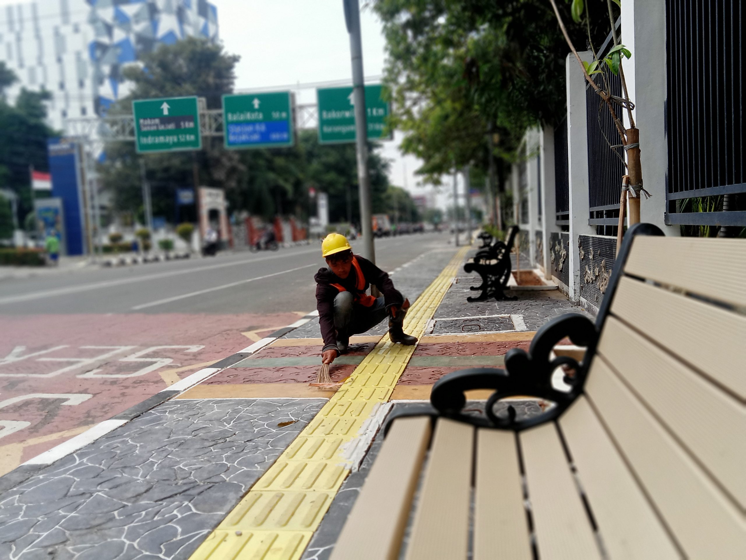 Pekerjaan lain yang sedang digarap adalah, pengecatan dan pembersihan trotoar. Sebenarnya, volume pekerjaan sekitar 98 persen pada akhir Desember lalu, kondisi trotoar itu bersih. Namun karena hujan dan trotoar sudah digunakan untuk umum, kondisi agak kotor kembali.