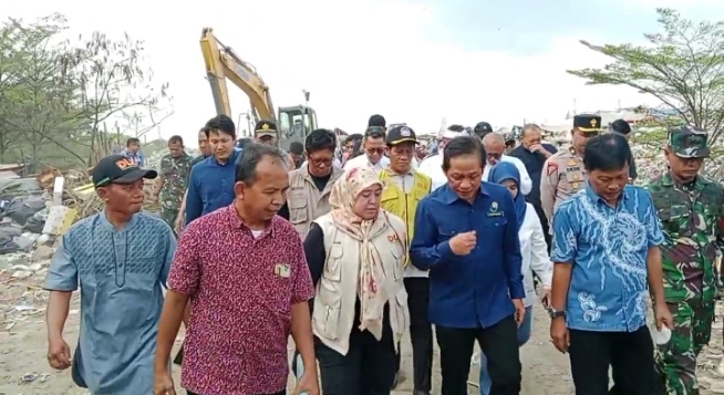 Menteri Lingkungan Hidup (LH) Hanif Faisol Nurofiq meninjau TPA Kopi Luhur, di Kelurahan Argasunya, Kecamatan Harjamukti, Kota Cirebon, pada Jumat sore (13/6).