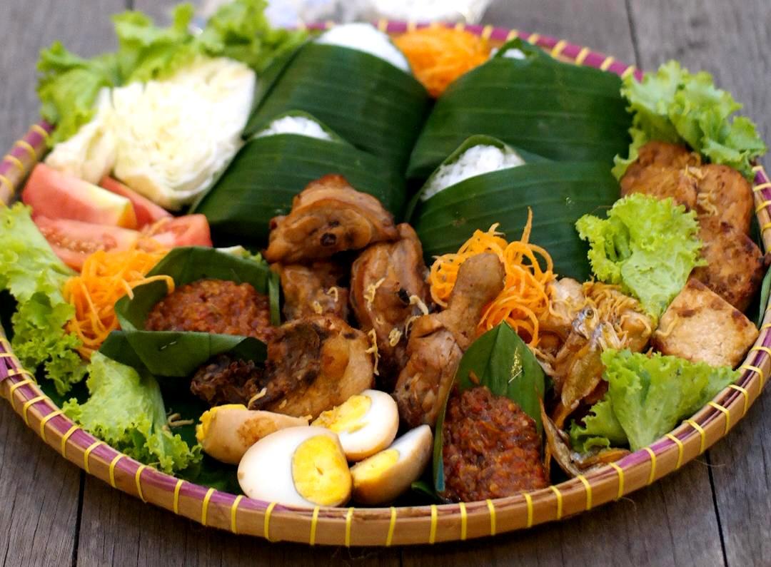 Komposisinya terdiri dari berbagai menu tradisional seperti nasi bakar, ayam bakakak, tumis daun pepaya, pepes peda, tumis buncis, tumis tongkol pedas, tumis oncom, sambal, hingga gurame goreng cobek.