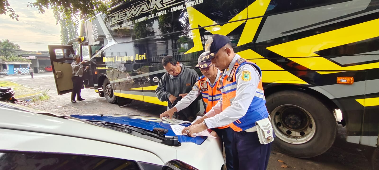 Dalam kegiatan tersebut, petugas memeriksa sedikitnya 14 unit bus terkait kelengkapan administrasi, masa berlaku uji KIR, serta kelaikan jalan.