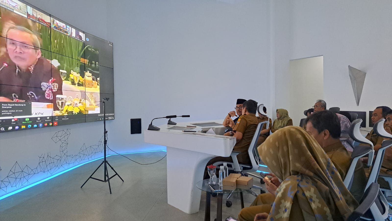 BUPATI DAN Sekda Kabupaten Cirebon beserta jajaran saat mengikuti zoom meeting dengan KPK di Command Center Setda Kabupaten Cirebon, Selasa (5/9).*