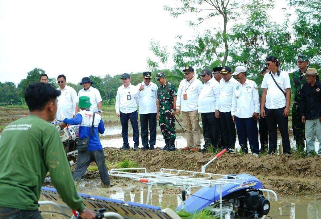 Kepala DKPP Indramayu, Sugeng Heriyanto tinjau lokasi pertanian di Kabupaten Indramayu. (Foto: Agus Sugianto/FC)