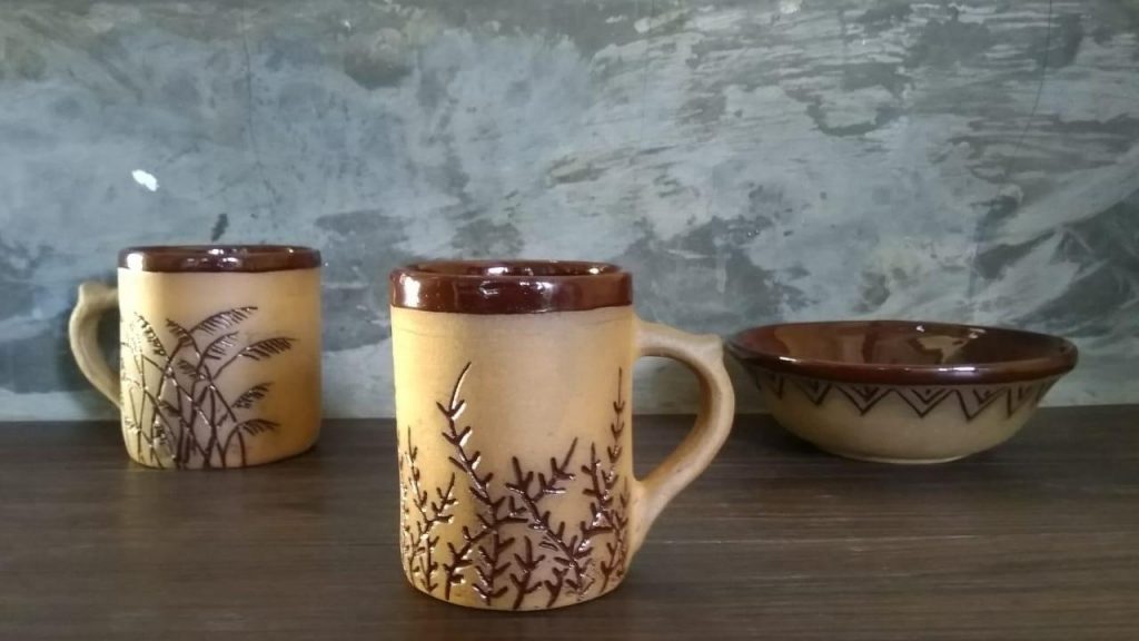 Sentuhan glasur ini, menurutnya, tidak dilakukan seluruhnya, melainkan hanya pada bagian dalam, seperti gelas, mangkuk, maupun cangkir. Bagian luarnya tetap menonjolkan unsur gerabahnya. (Andriyana)