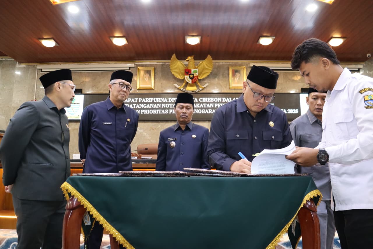 KOTA CIREBON, (FC).- DPRD Kota Cirebon bersama Pemerintah Daerah menyetujui perubahan Kebijakan Umum Anggaran dan Prioritas Plafon Anggaran Sementara (KUA PPAS) Tahun Anggaran 2025 dalam rapat paripurna di Griya Sawala, Senin (8/9/2025).