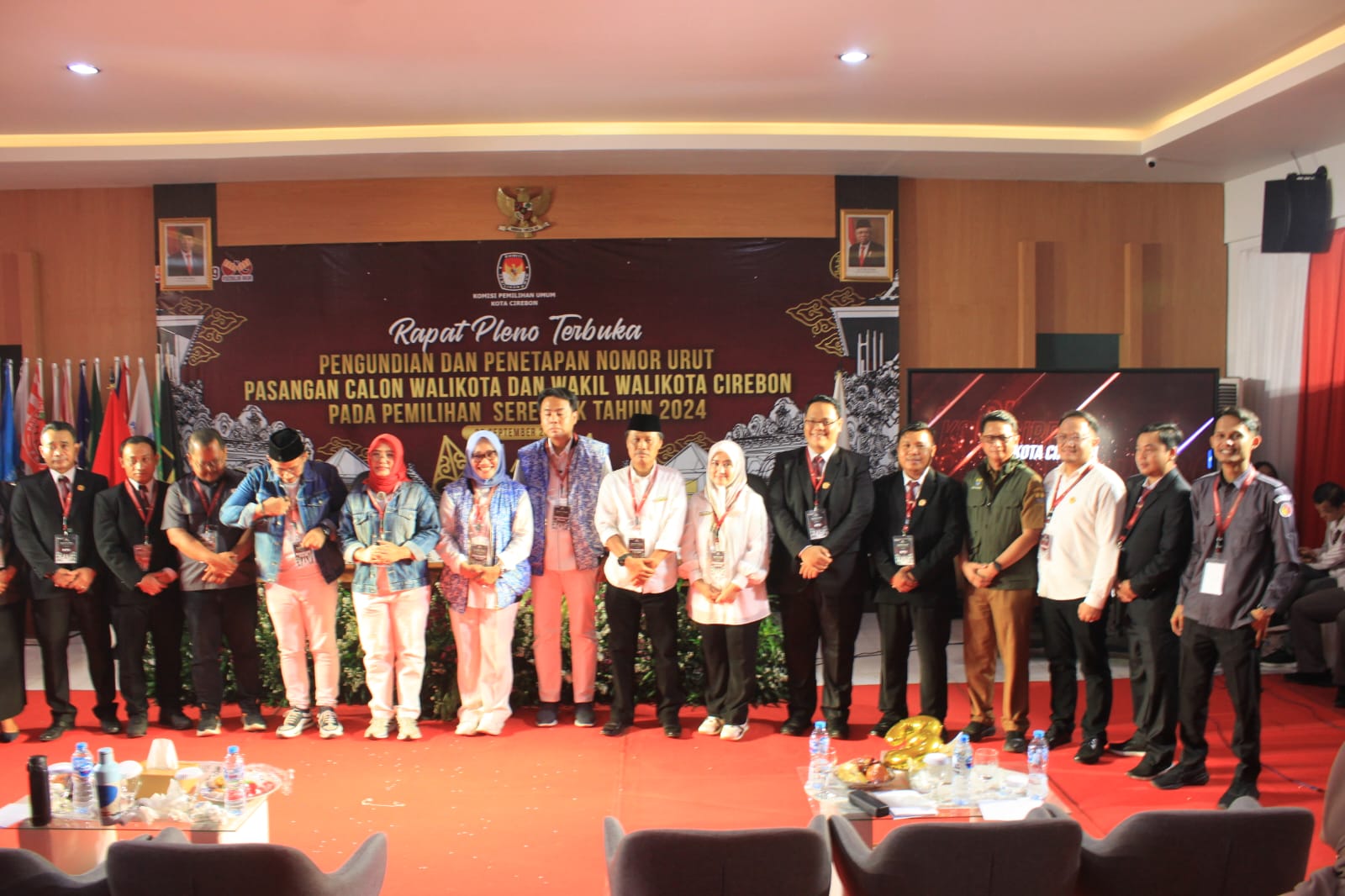 KOTA CIREBON, (FC).- Komisi Pemilihan Umum (KPU) Kota Cirebon melaksanakan Rapat Pleno Terbuka, untuk pengundian dan penetapan nomor urut pasangan calon Wali Kota dan Wakil Wali Kota Cirebon.