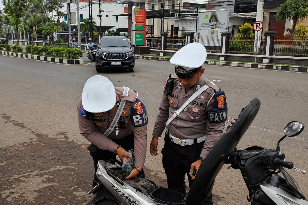 “Anggota kami sedang melakukan pengaturan lalu lintas, kemudian melihat ada ibu-ibu yang mendorong sepeda motornya. Karena kasihan sudah mendorong cukup jauh, akhirnya anggota kami membantu membelikan bensin,” ujarnya.