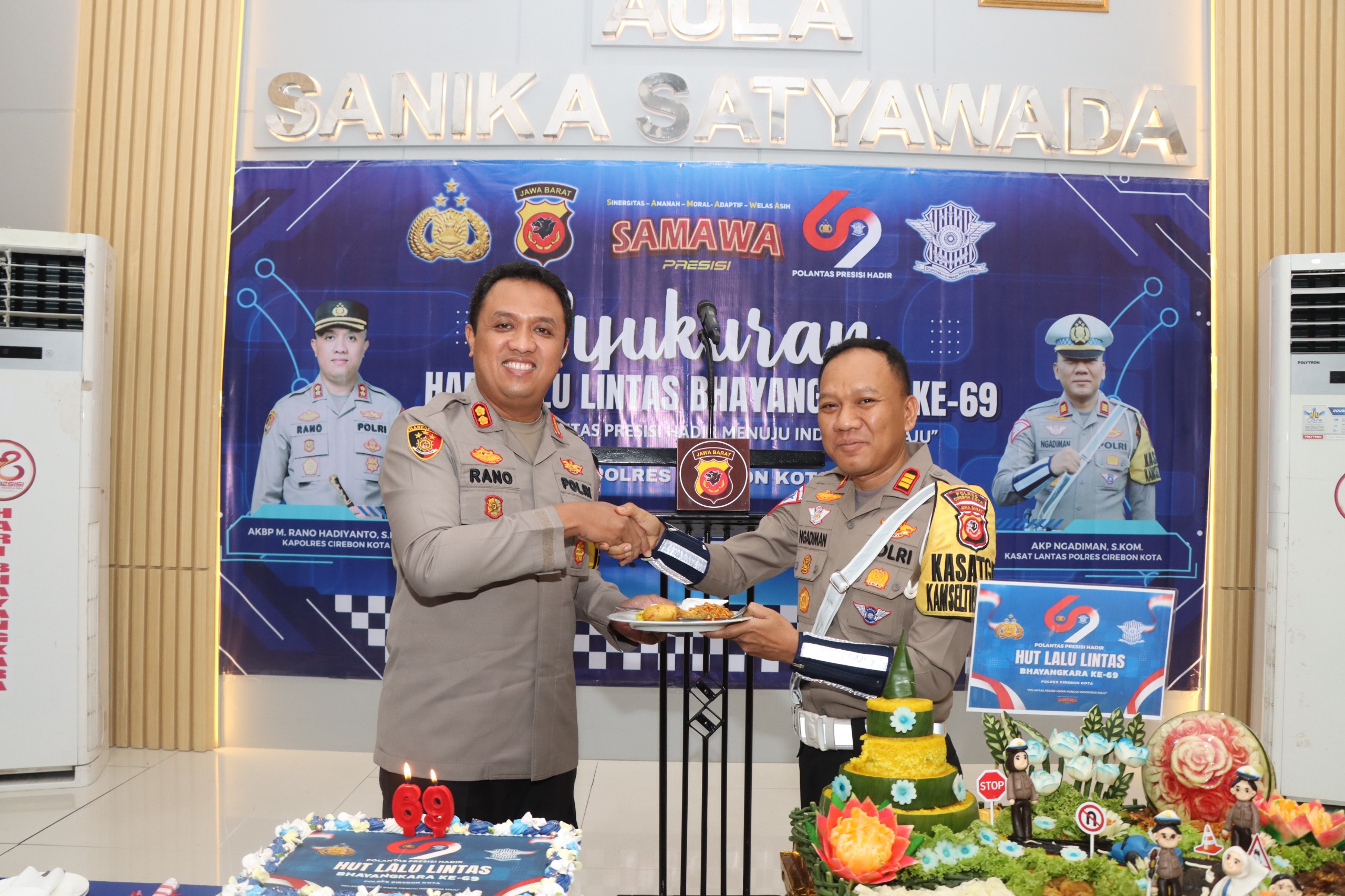 KOTA CIREBON, (FC).- Dalam rangka memperingati Hari Ulang Tahun Lalu Lintas Bhayangkara ke-69, Polres Cirebon Kota menggelar syukuran di Aula Sanika Satyawada.