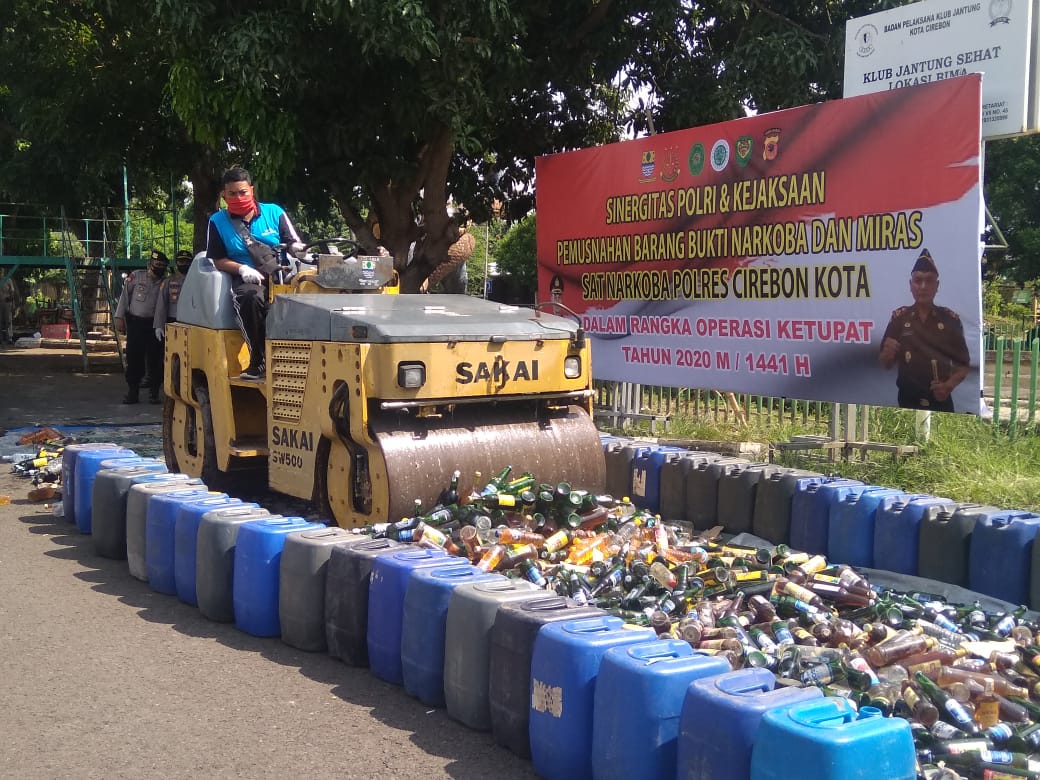 KOTA CIREBON, (FC). – Polres Cirebon Kota memusnahkan ribuan barang bukti narkoba dan minuman keras bertempat di halaman parkir stadion Bima Kota Cirebon, Jumat (22/5).