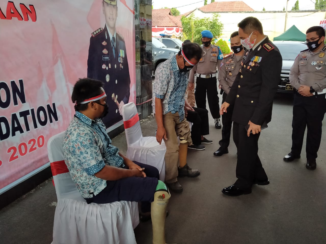 KAB. CIREBON, (FC).- Usai melaksanakan Upacara peringatan HUT RI Ke 75, Polresta Cirebon langsung memberikan bantuan Kaki Palsu kepada penyandang Difabel warga Kabupaten Cirebon.