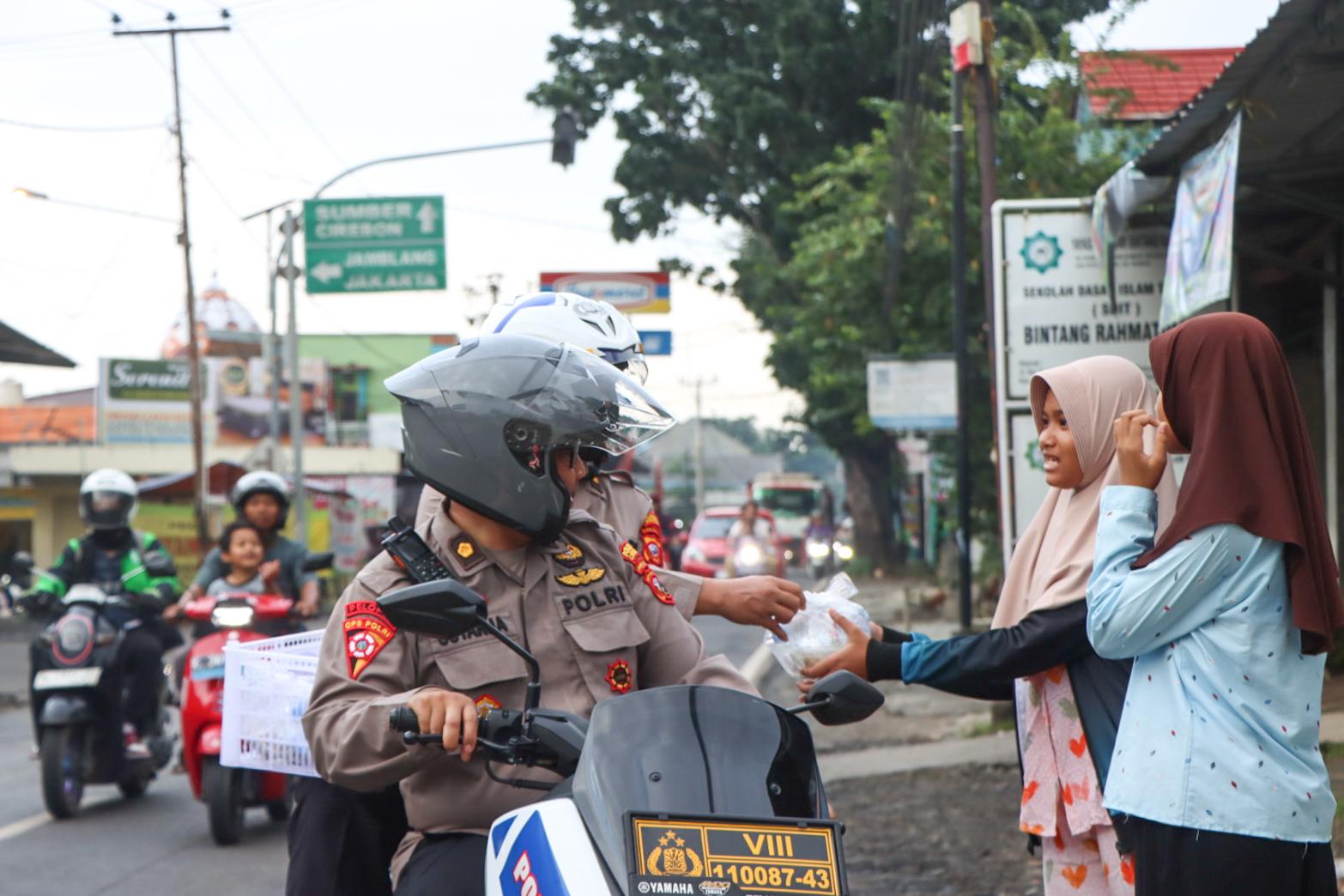 “Dalam kegiatan patroli ngabuburit ini Polresta Cirebon membagikan takjil sebanyak 200 paket berupa kolak pisang dan kolang kaling yang dimasak sendiri untuk dibagikan sebagai takjil berbuka puasa,” kata Kapolresta Cirebon Kombes Pol Sumarni.