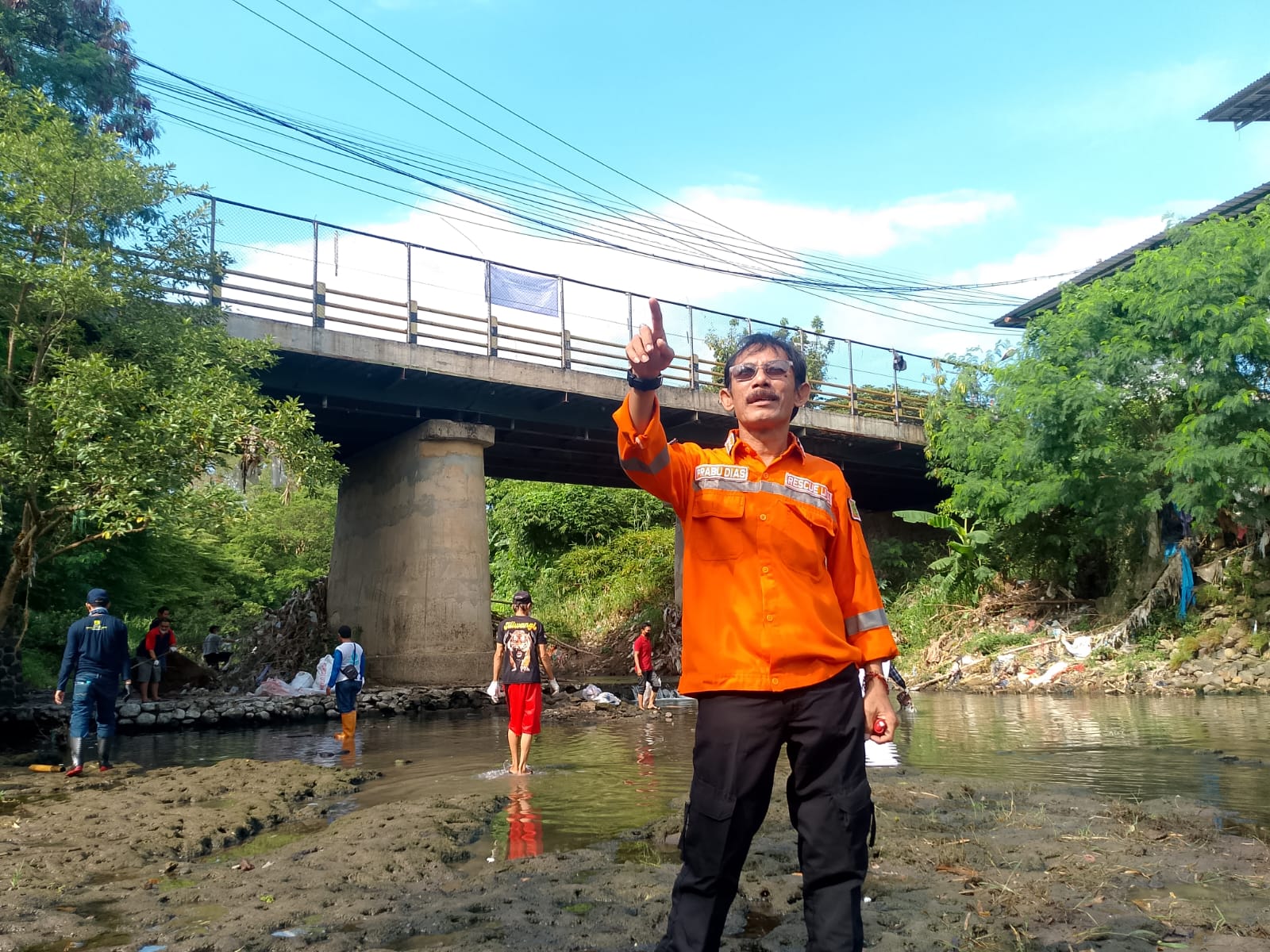 Sekretaris Jenderal Forum Lingkungan Hidup dan Budaya Nuswantara Prabu Diaz, saat melakukan bebersih Sungai Suba.* (Foto: Agus/FC)
