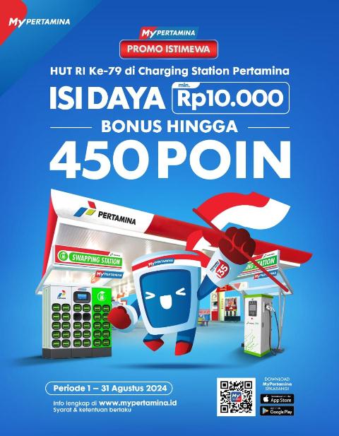 “Pengguna setia produk-produk Pertamina lainnya juga dapat menikmati promo kemerdekaan seperti promo hemat pembelian tabung Bright Gas all variant dan isi ulang LPG Bright Gas 5,5kg dan 12kg di aplikasi MyPertamina, kemudian bagi pengguna kendaraan listrik juga bisa mendapatkan tambahan 450 poin MyPertamina dari transaksi di Charging Station Pertamina,” jelas Heppy.