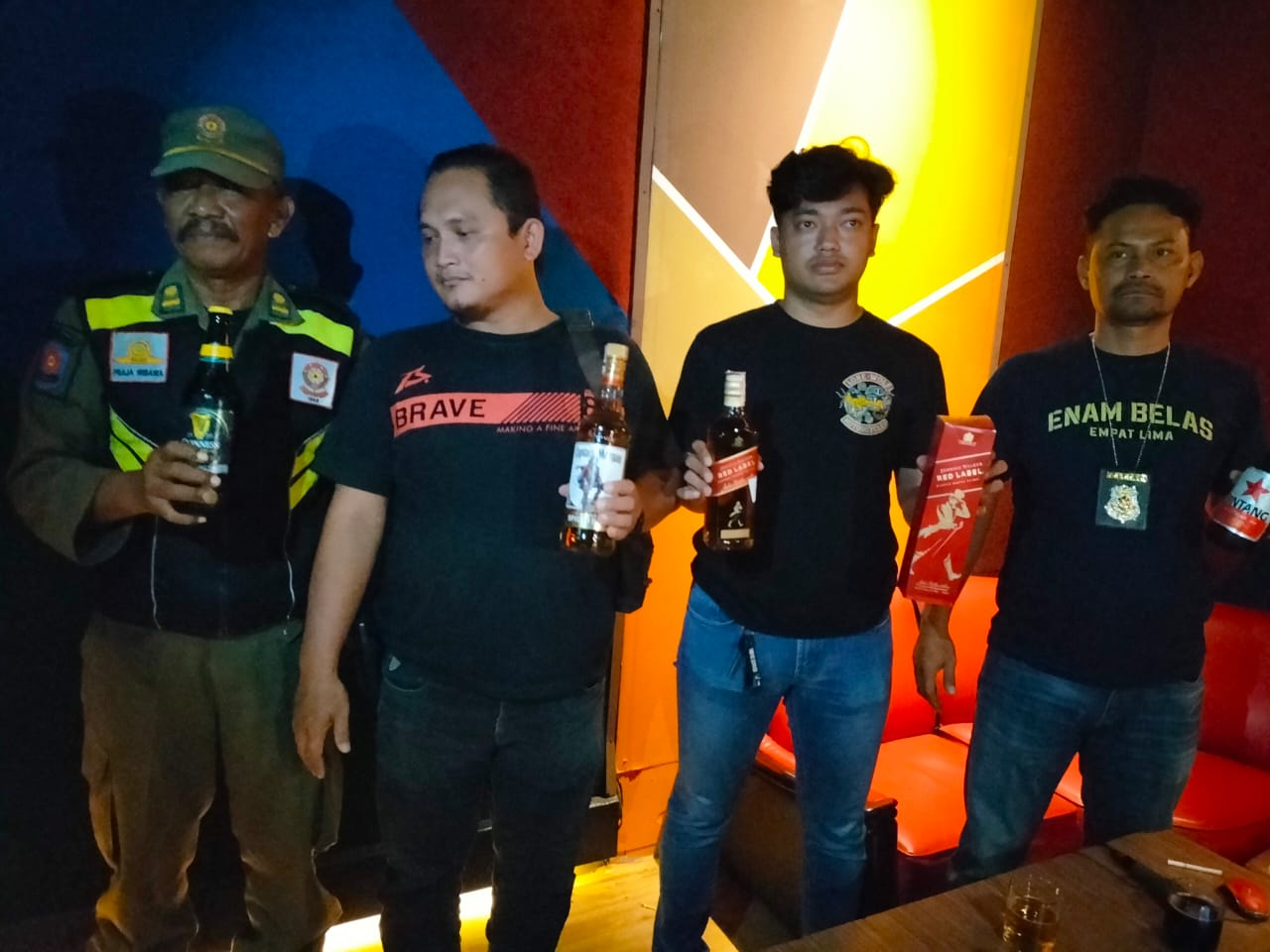 Hasilnya, puluhan botol minuman keras berbagai merek disita petugas.